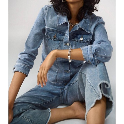 Joseph Ribkoff Fitted Denim Jacket With Allover Rhinestones 241914 IBHANA Very well made.